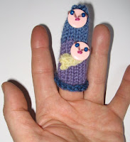 I fotoarkivet fant vi enda en fingerdokke som datter Kaia har strikka. Den ble til rett før jul 2007 og forestiller selveste Jomfru Maria med jesusbarn. Forbilledlig forenkling, synes vi. Og det er lett å se hvem ungen slekter på.