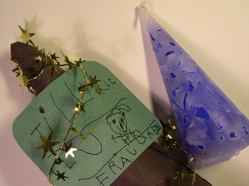 1. Bildet under: Før jul 2004 ankom følgende gave i posten fra oslogutten Jørgen på fem år: et konisk, blått stearinlys, en nissetegning og et grønt papirjuletre med gullstjerner. Forsendelsen var adressert til Svein, men selve presangen var til Lille Lu, den store lille hovedpersonen i fortellingsbokLille Lu og trollmannen Bulibar fra 2001. Sånt rører små og store hjerter, enten de er av papir eller av ekte blod og muskelvev.