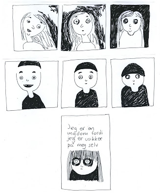 sensurerte meg sjøl også. Jeg viste for eksempel ikke at faren faktisk slår mora til gutten. Slik blir det dessuten rom for leserens egen fantasi. Og dermed oppstår det mye farligere bilder enn det jeg kan klare, eller ønsker, å tegne.