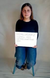 Summary in English: Young installation. Simple conceptual art by Kaia (19): Installation 1: Touch me. Installation 2: Tell me your secrets.