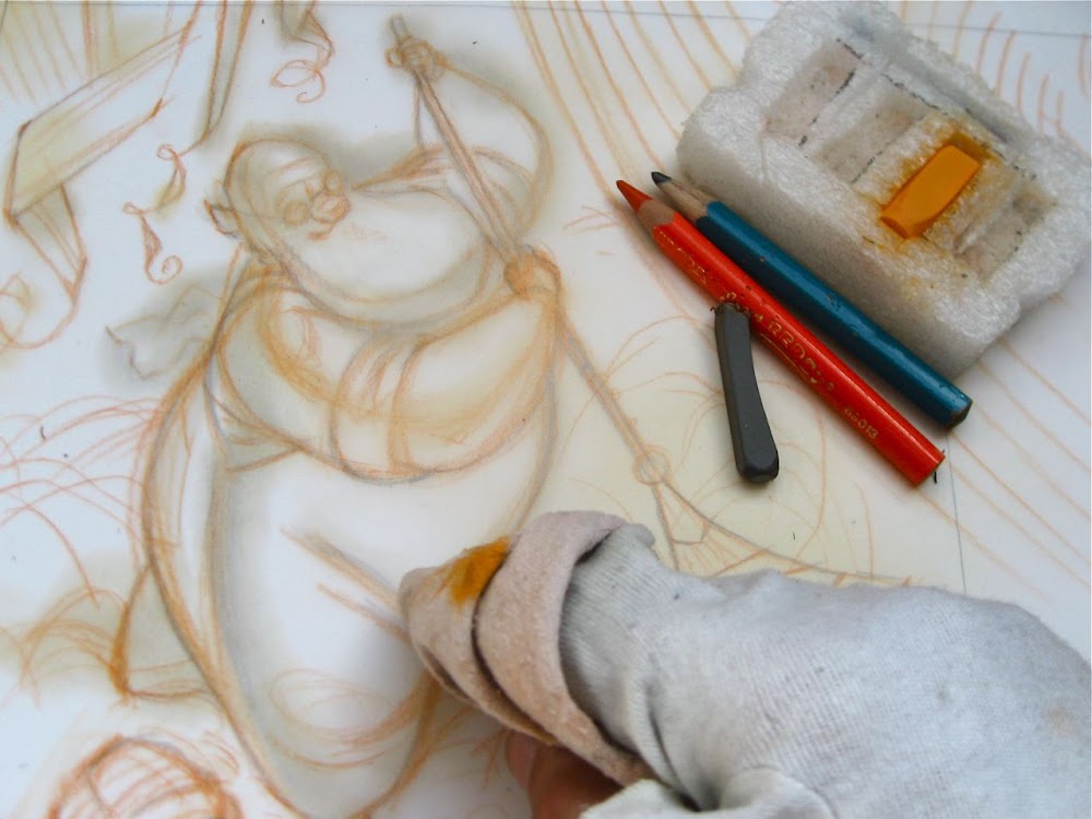 3. Originaltegning: Tracing med blyanter på kalkérpapir