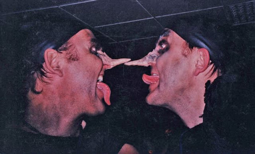 Som en sommer-bonus til spesielt interesserte viser vi her de smellvakre profilene til tvillingtegnere i «To menn og en tavle». Dobbeltportrettet er tatt like før festmiddagen under Den nordiske barnebokkonferansen i Stavanger i 2003. Dresskoden for arrangementet var «fantasy», og tvillingene hadde for anledningen iført seg svarte badehetter, åpne burnuser og ellers veldig, veldig lite.